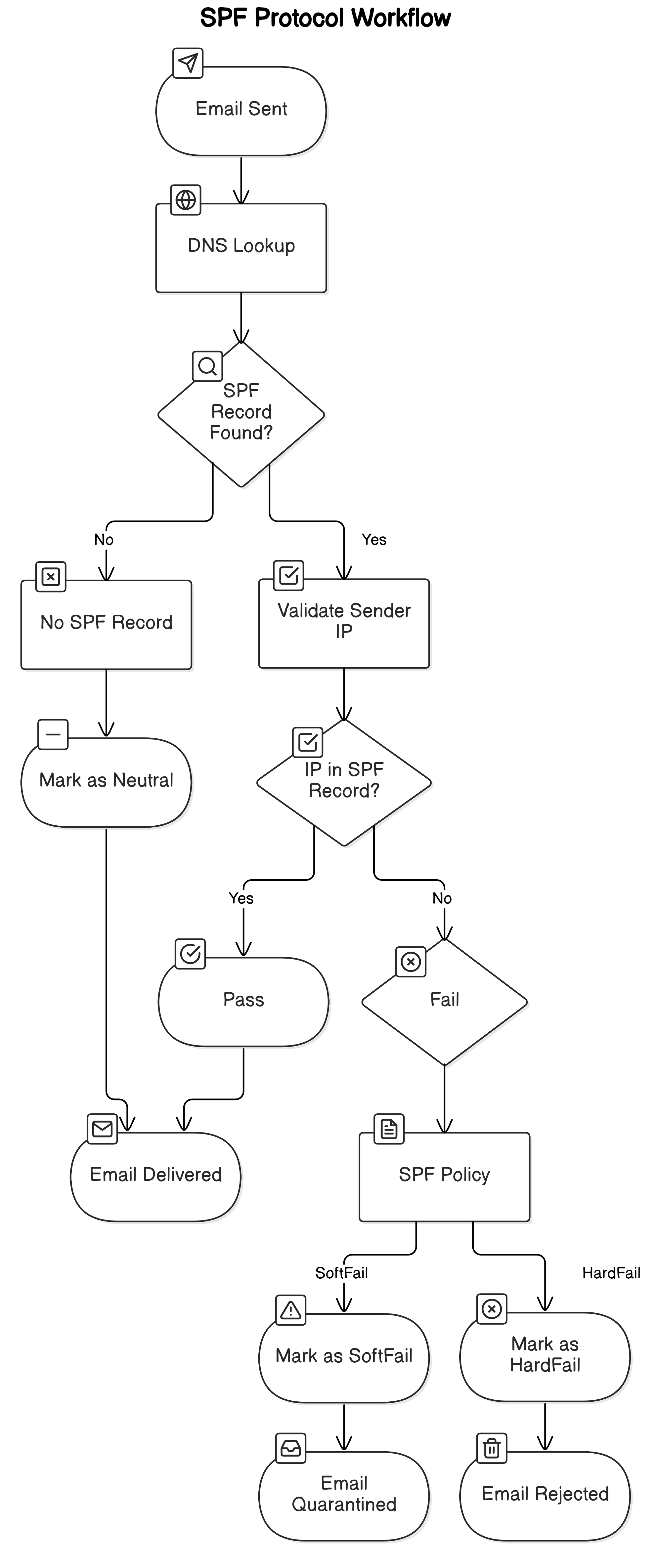 Neutral : L'enregistrement SPF n'émet pas de directive spécifique. L'email est traité normalement.